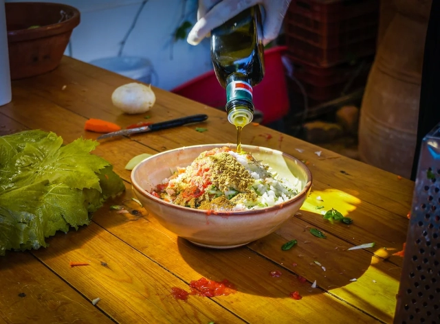 After cheese making, you have a hands-on cooking experience. You have the opportunity, and with the guidance of a chef, to learn to make authentic Cretan plates using a wide range of fresh, organic ingredients from our garden. After the cooking class, you will sit down and enjoy the meal you’ve learned to cook, accompanied by local wine.