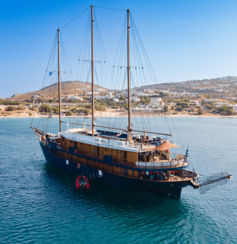 Your island-hopping adventure begins with a luxurious sail to the enchanting Aegean islands. First, arrive at Poliegos, an uninhabited island famous for its pristine beaches and turquoise waters. In the morning, enjoy a swim stop followed by a BBQ on deck.